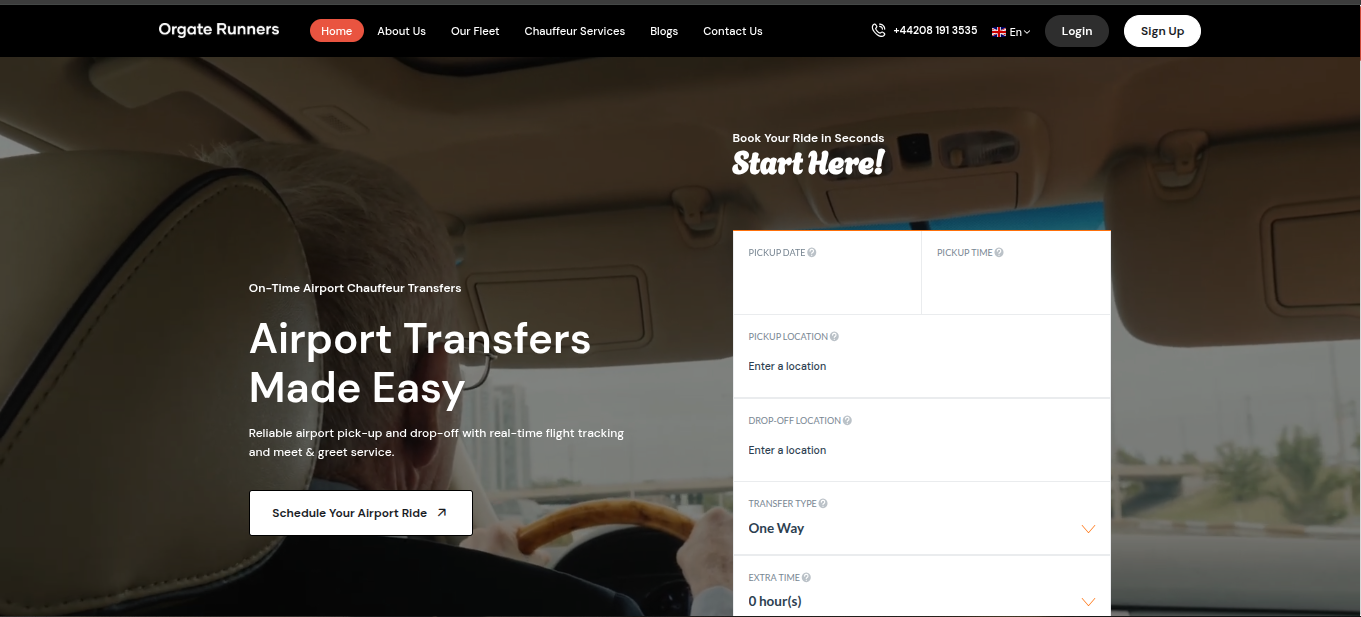 Orgate Runners, is a luxury transportation service operating in London & Worldwide Globally that allows users to book chauffeur driven journeys in a high end vehicles either immediately or with prior scheduling.